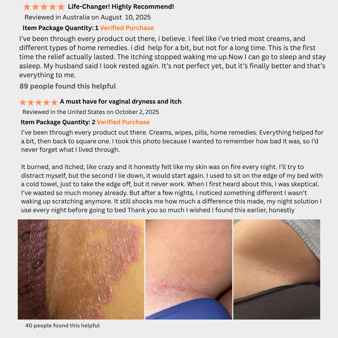 For every woman who dreads bedtime because of that constant itching down there. NightSkin™ calms the burning, itching, and irritation so that you can wake up soft, calm, and finally at peace in your own body.
